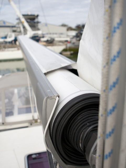 If the wind increases and you have to reef the mainsail, you can easily furl the main to one of the battens, so the batten is right under the mandrel – very easy and safe.